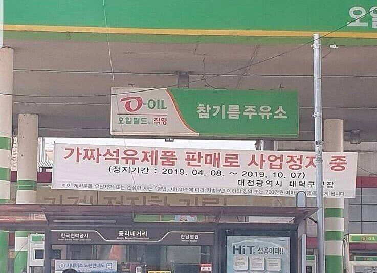 영업정지 당한 참기름 주유소