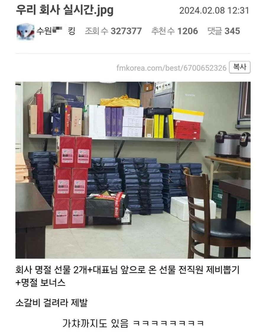 유쾌한 중소기업 설선물 지급현장