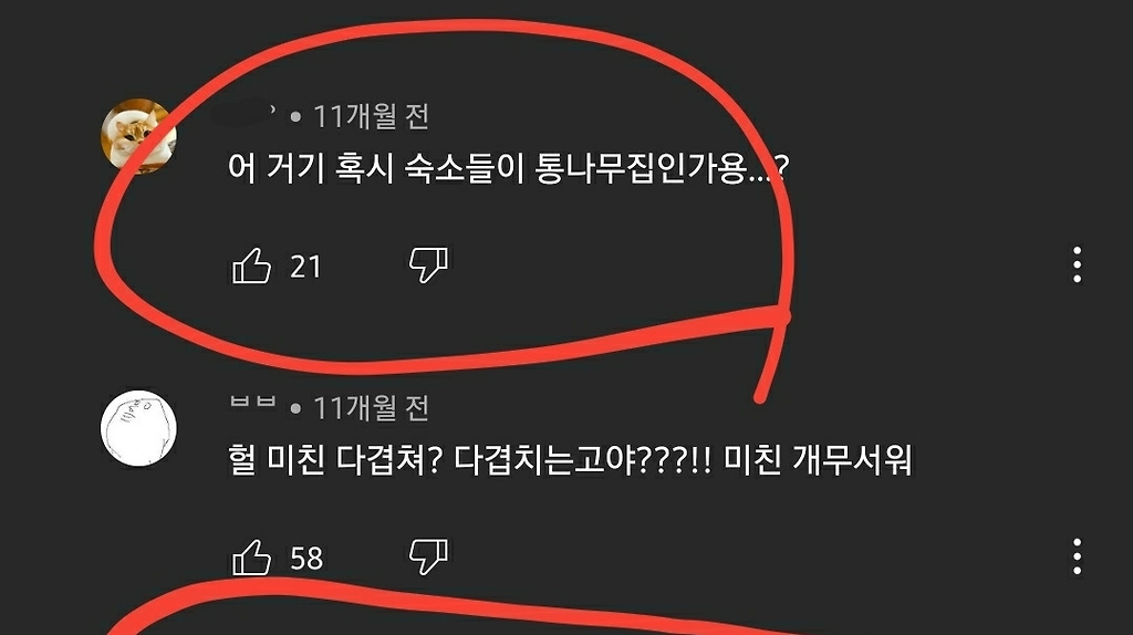 처음 달린 댓글에 답글로 쭈르륵 달린 댓글들 모두가