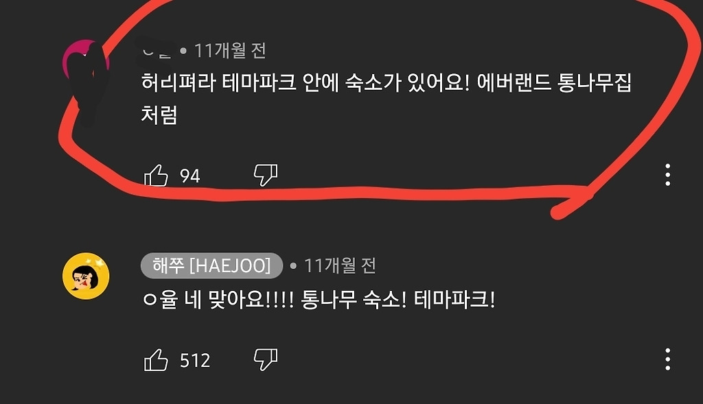 해쭈가 간 숙소랑 댓글에서 갔다고 하는 숙소 위치가