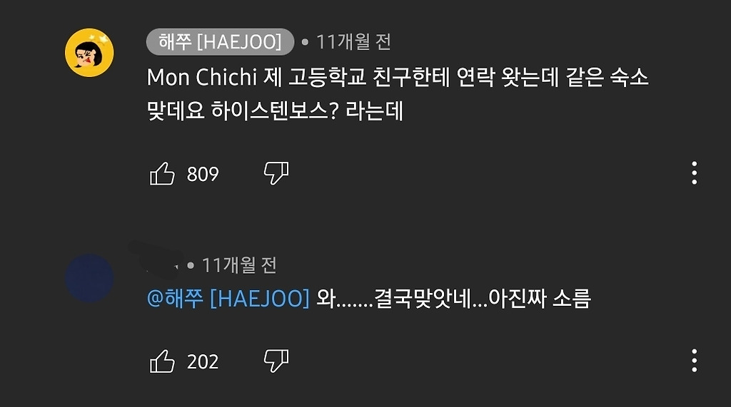 그러고 다른 영상에서...오랜만에 만난 해쭈와 고등학교 친구