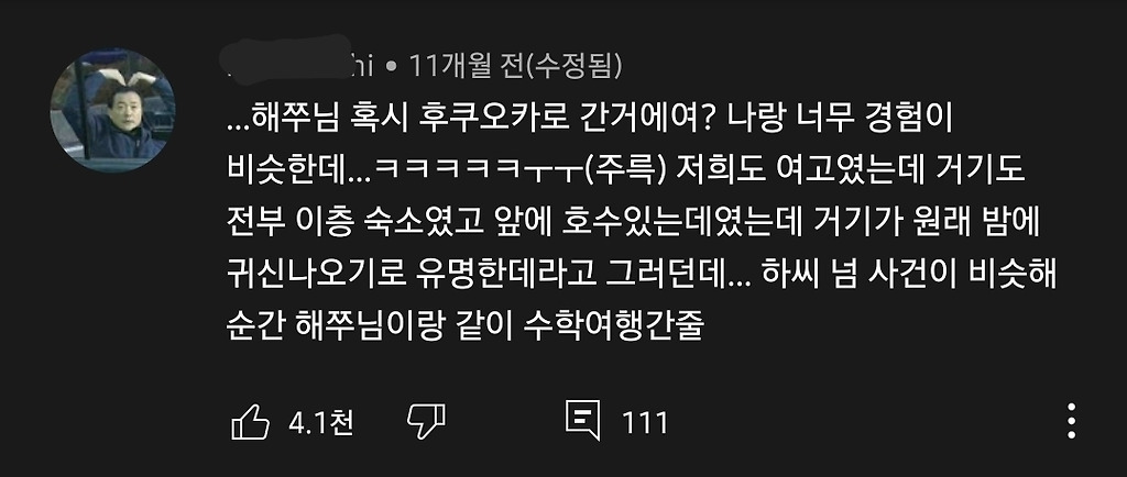 유튜버 해쭈가 일본 수학여행에서 겪은 실화 (+댓글)