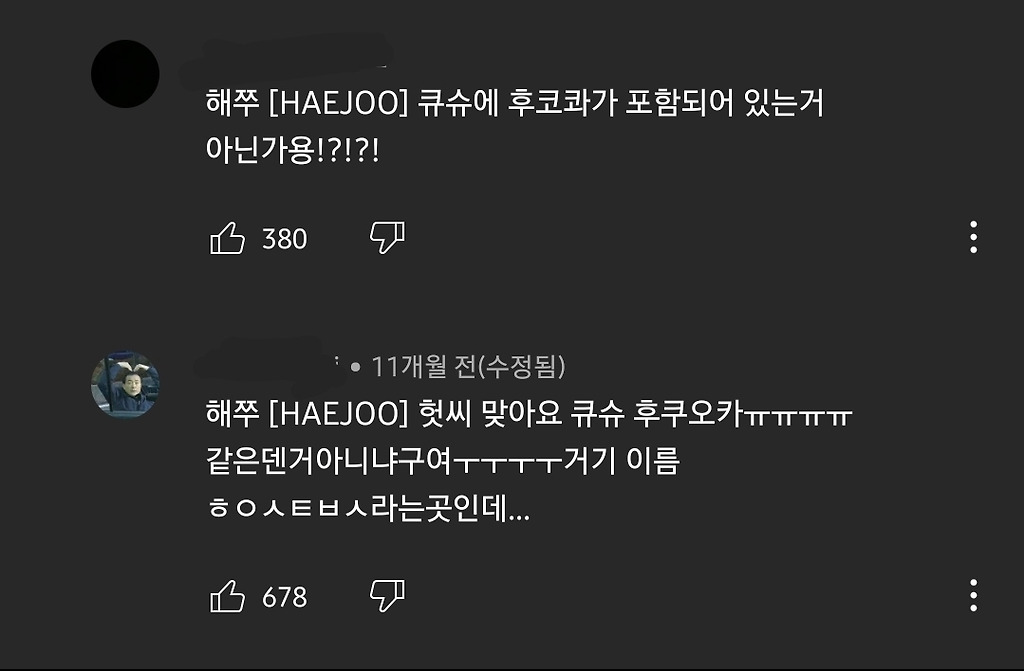 같은 '큐슈 후쿠오카'라는 걸 알게 됨