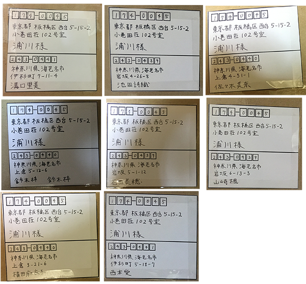 그러나 우라카와 씨가 받은 택배에는 전부 다른 이름이 적혀 있습니다.