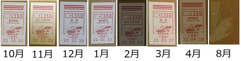 우케츠 : 증지에는 우체국 이름 이외에도 날짜가 기재되어 있습니다.