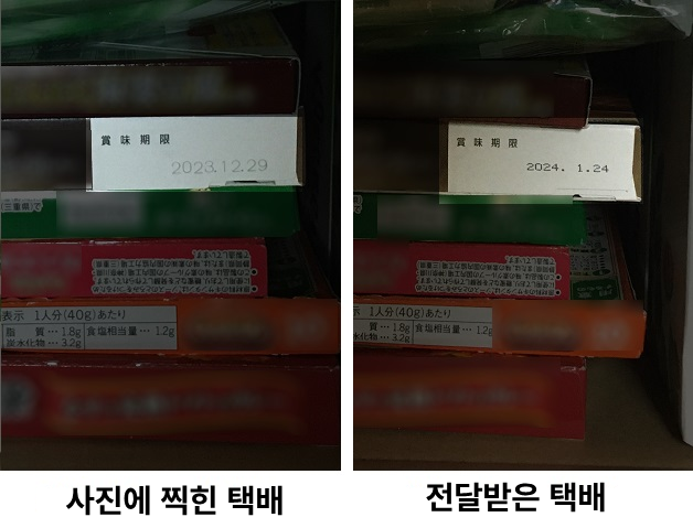 사진에 찍힌 건 [2023.12.29]인데, 제가 받은 실물에는 [2024.1.24]라고 적혀 있습니다.