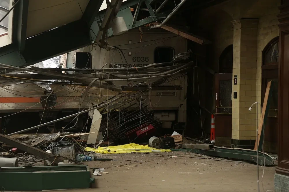 미국 뉴저지 주 호보컨 터미널 플랫폼에 진입한