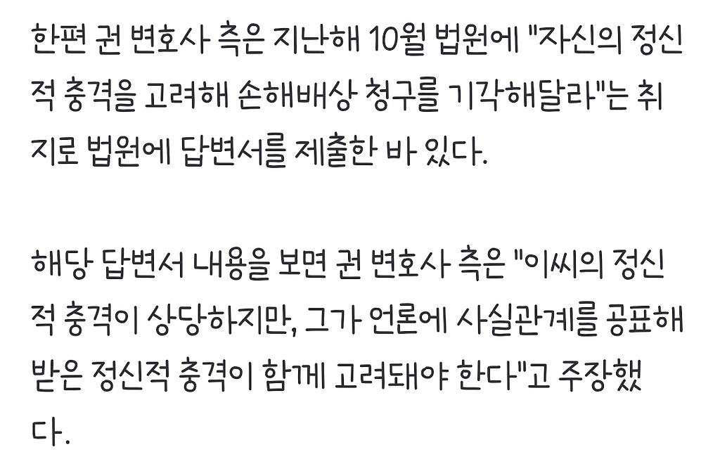 자기 정신적 충격 고려해서 손해배상 청구 기각해달라고도 함