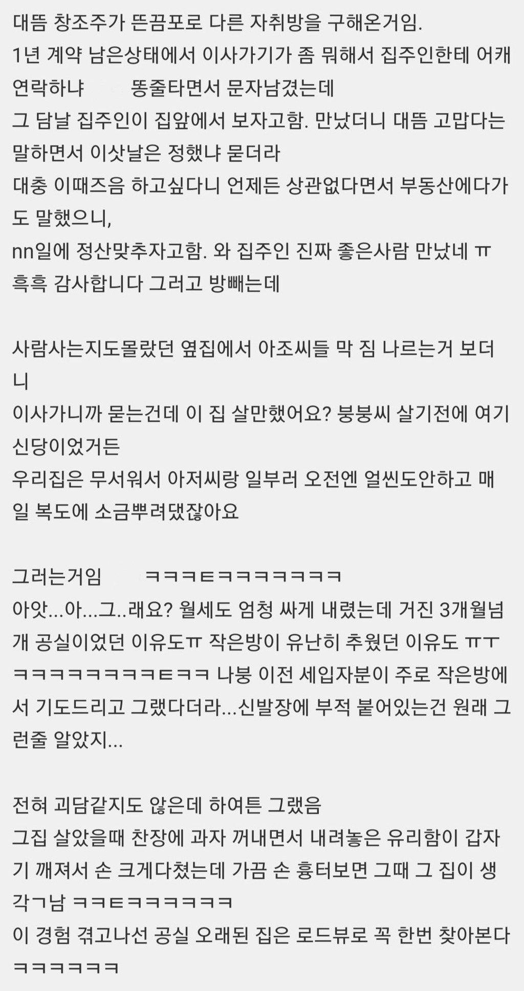 예전에 이사 비시즌에 자취방을 구한 적이 있어