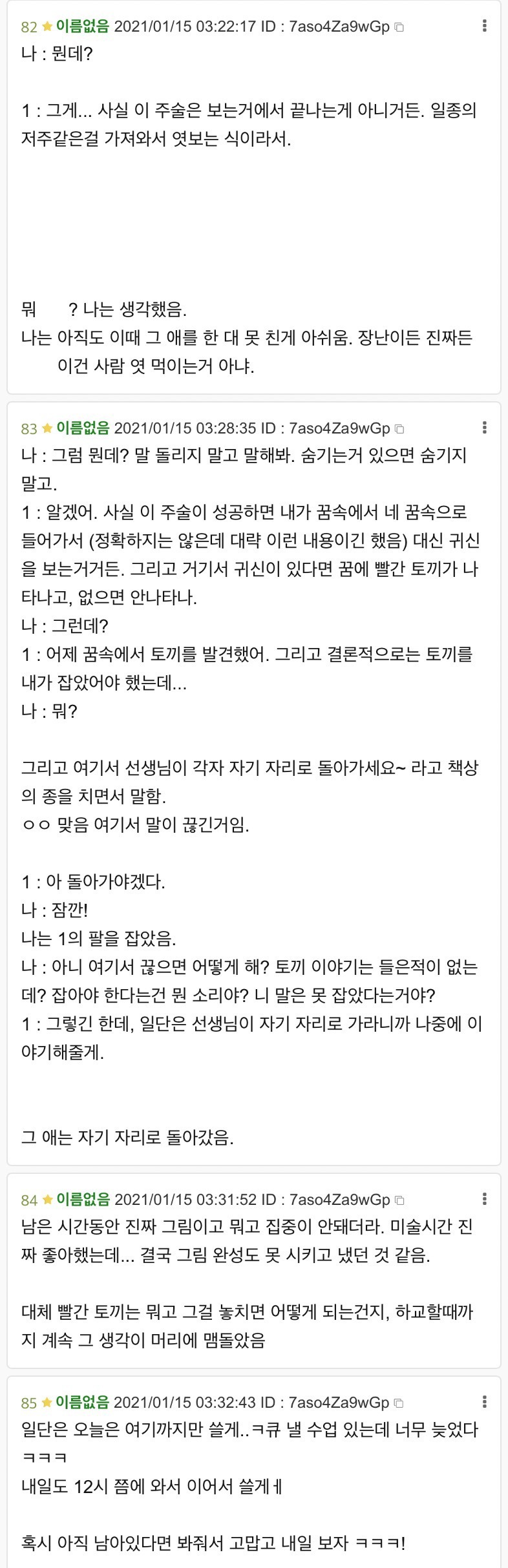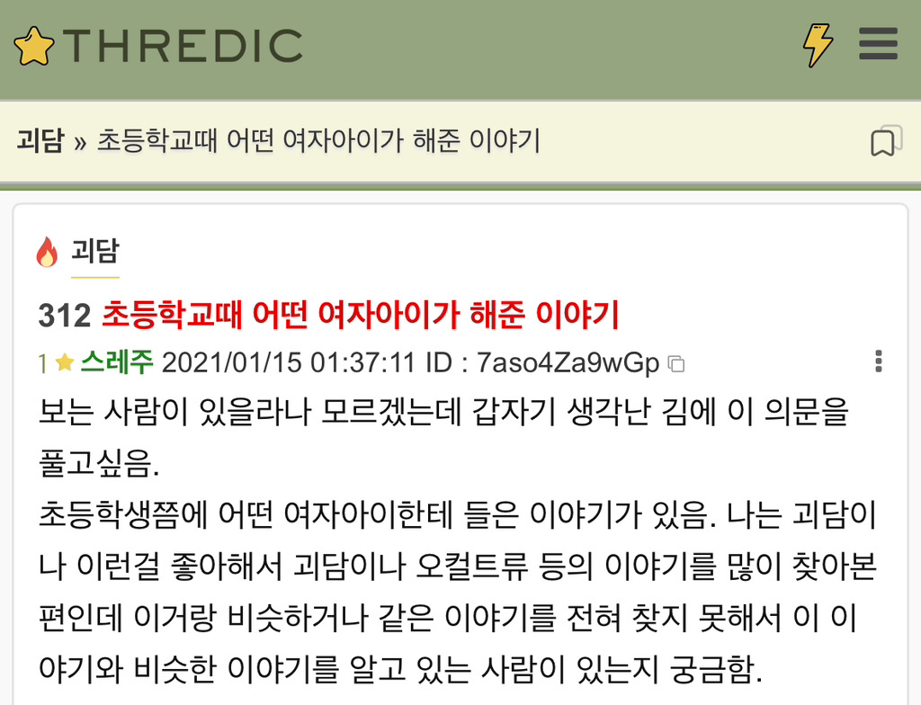 초등학교때 어떤 여자아이가 해준 이야기 - 스레딕
