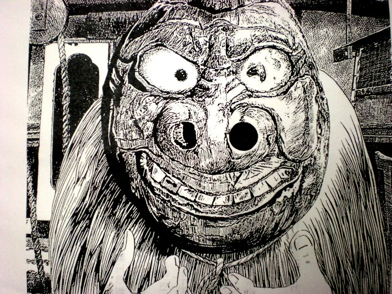 구체적인 모습은 정월 밤이 되면 콩 찌꺼기 가면을 쓴 채로 게으른 사람을 잡아먹는다고. 야광귀 같은 느낌이 강하다.