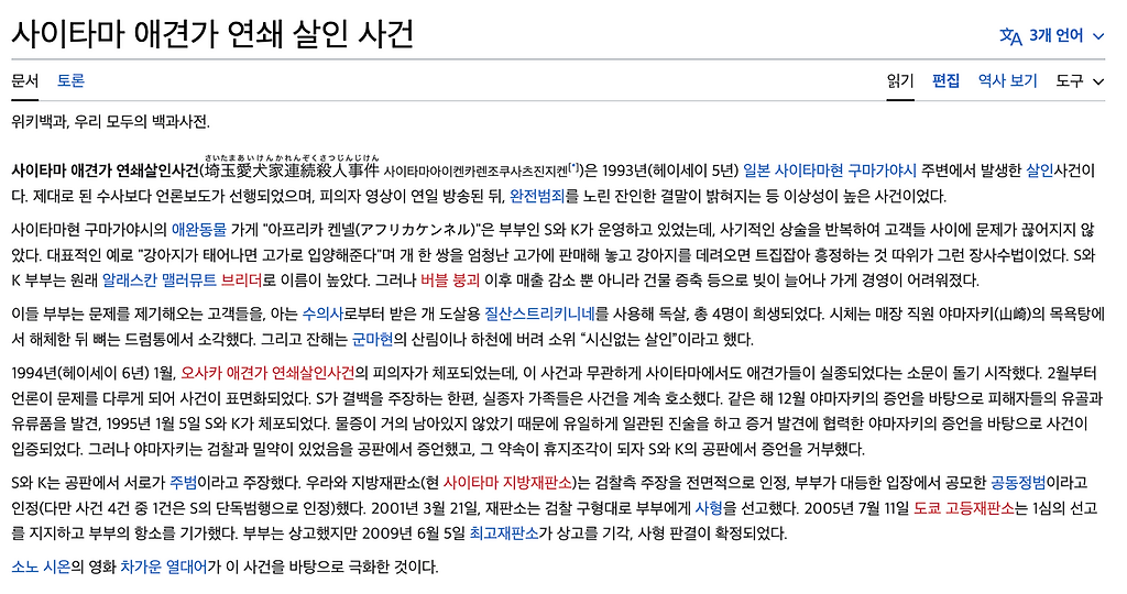 위키피디아의 사이타마 애견가 연쇄살인사건