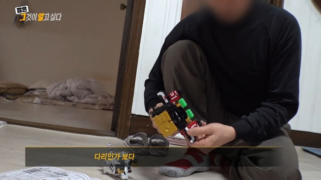 천진난만한 얼굴로 로봇장난감을 조립하는 남자는 38살의 남성.