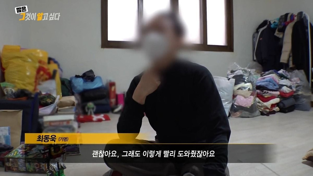 현재 민간 사회복지사의 집에 머무르고 있는 남자분.