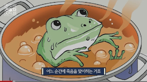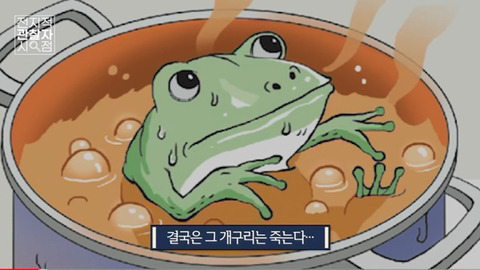 기후위기는 솥 안의 개구리 비유가 딱 맞음. 행성충돌이나 운석충돌 같이 한 날 한 시에 모두가 공평하게 죽어나가는 것이 아님. 아주 오랫동안 미저러블한 삶을 이어나가야한다는 점이 가장 끔찍한 거야.