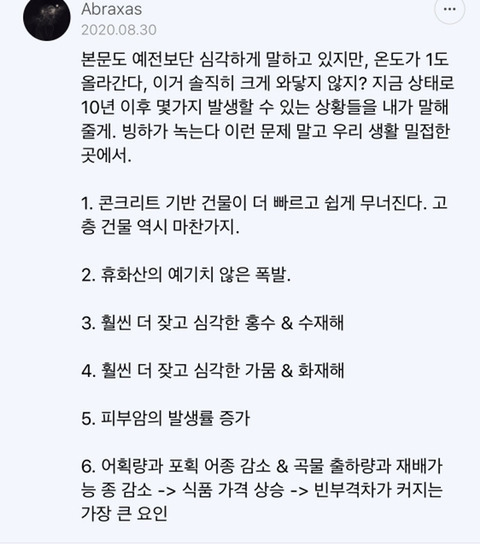 불과 이 년 전에 쓴 댓글인데 이미 저 예상 시나리오 중 몇가지는 이미 시작된 것 같지.. 향후 10년을 말했지만 점점 더 가속화되어가는 것 같아. 다들 경각심 가지고 노력하자