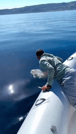 찢어진 마대자루에 몸이 감긴 거북이 구조