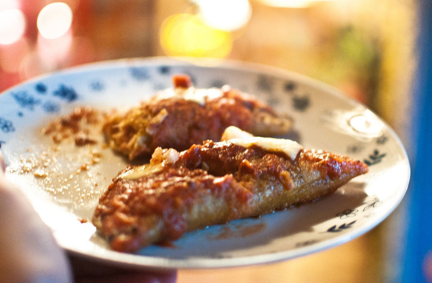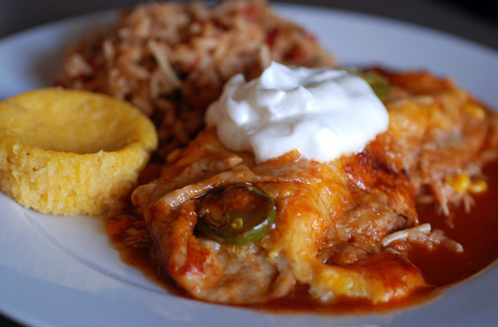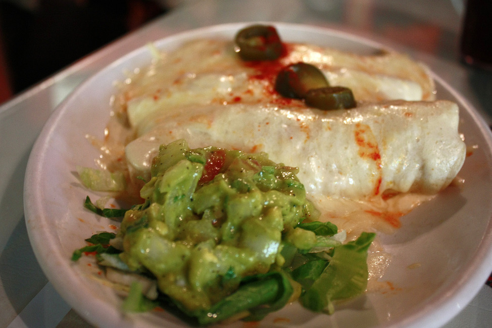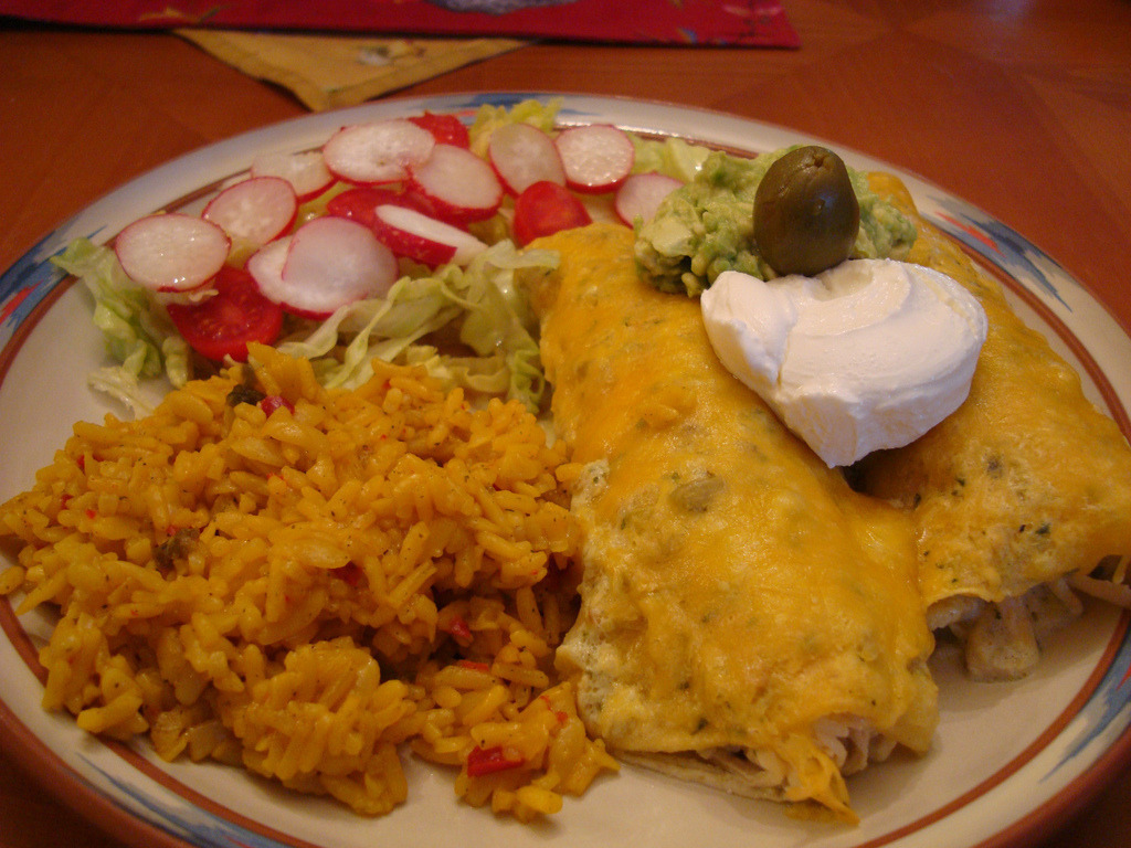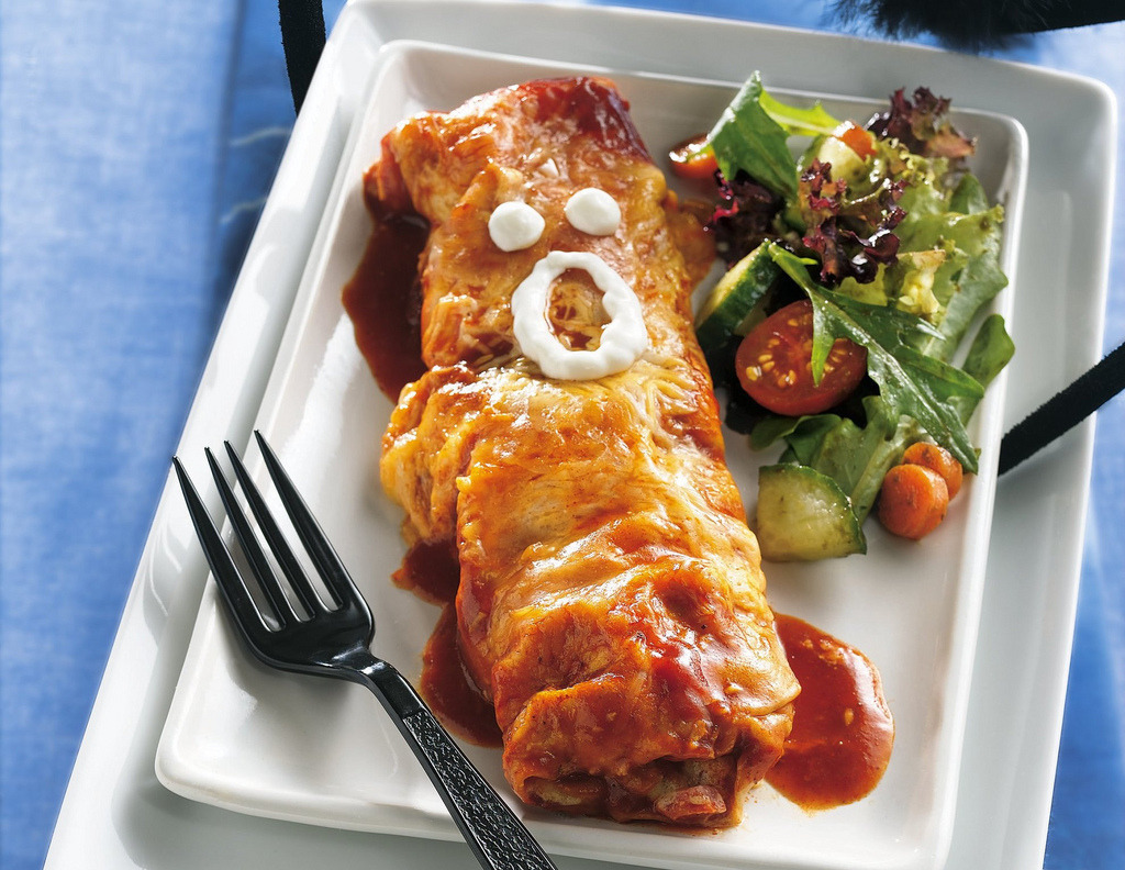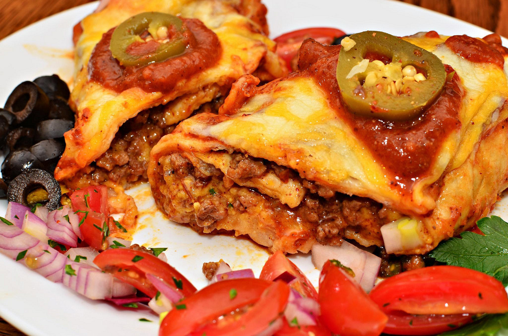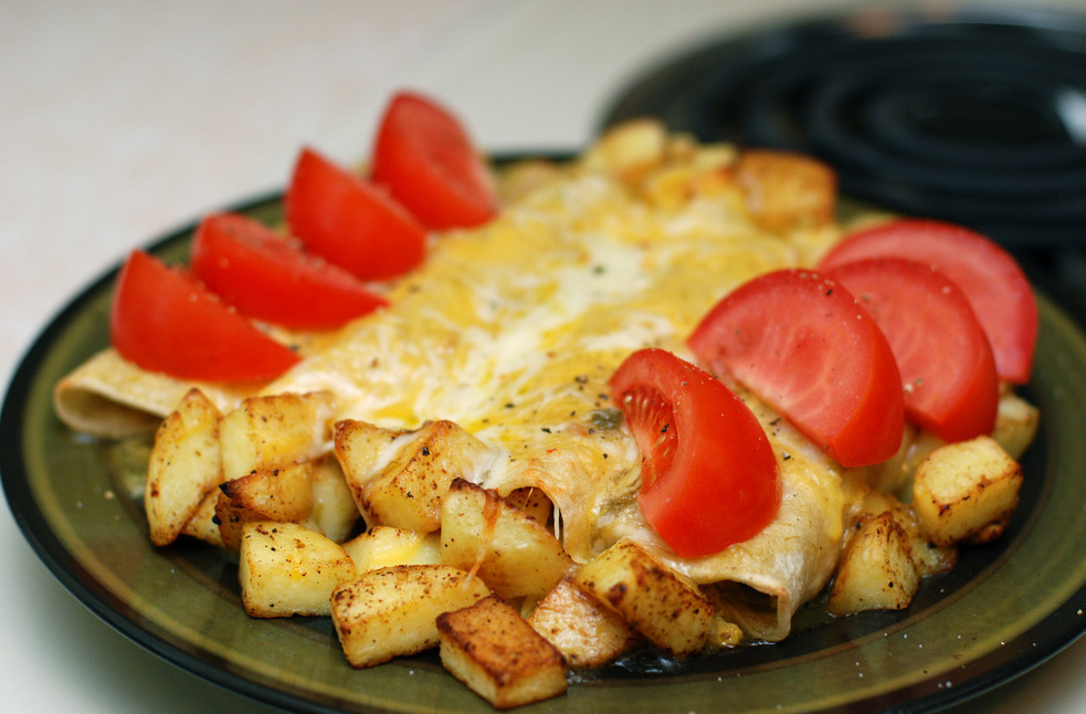 고기,치즈,야채 등을 넣은 또르띠야 위에 치즈를 올려