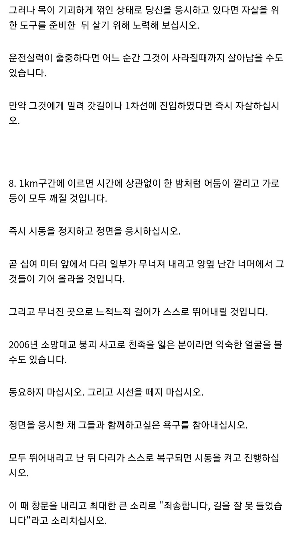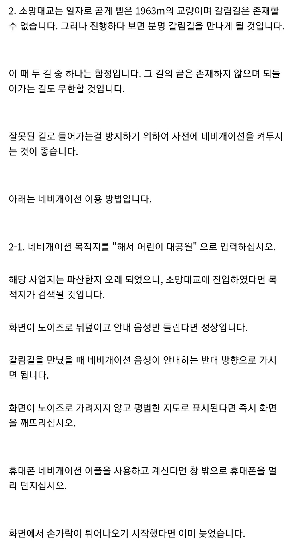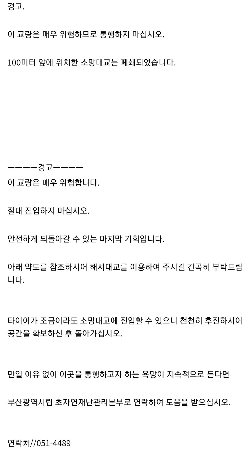 -경고- 소망대교는 폐쇄되었습니다. 다른 길로 가십시오.