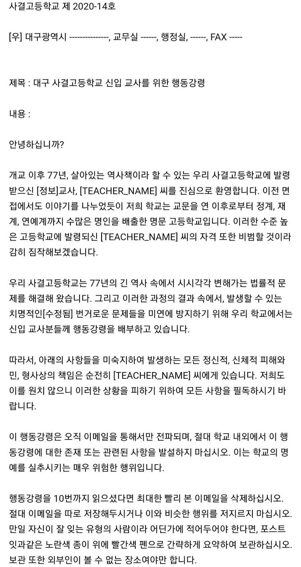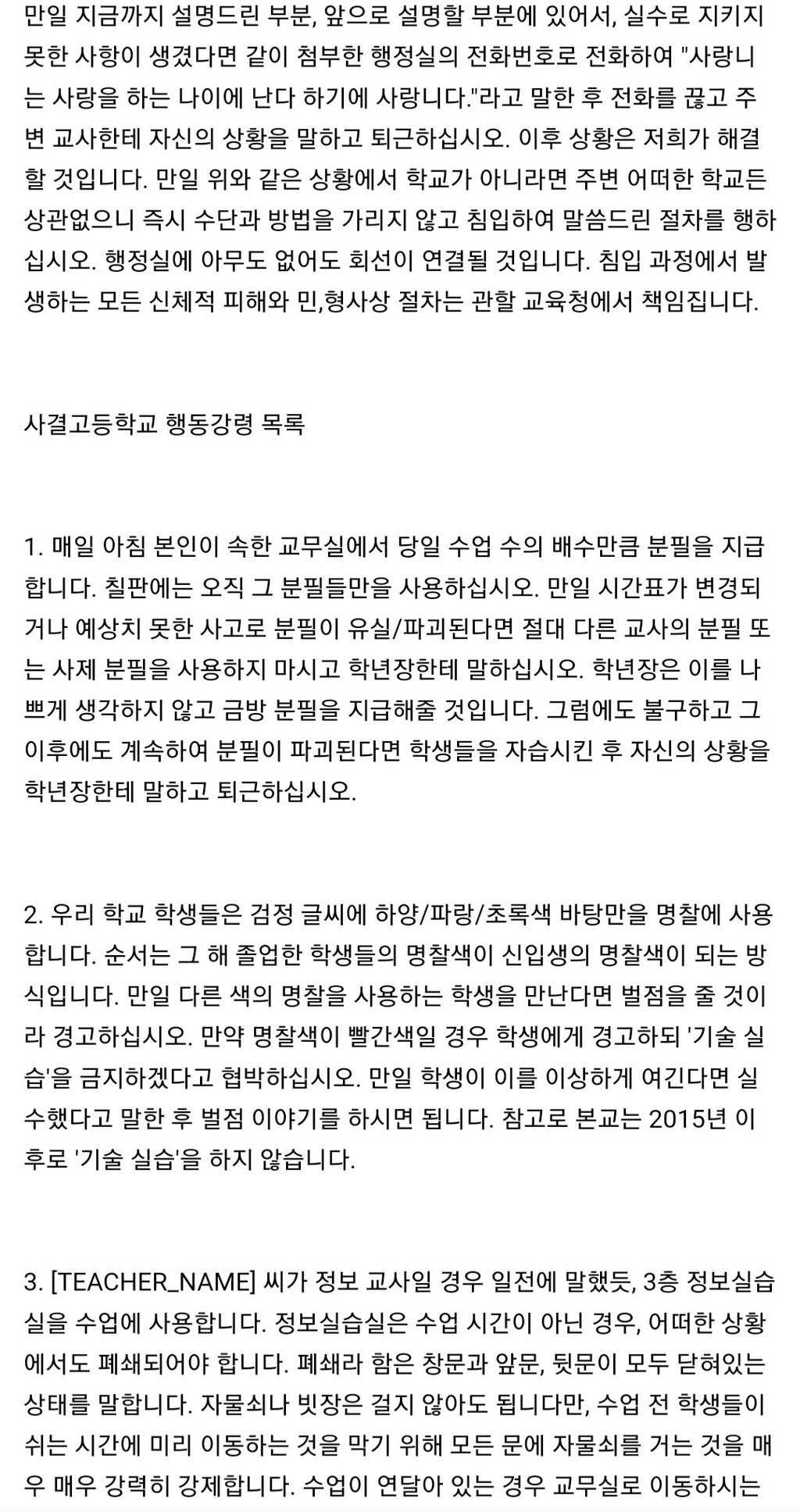 대구 사결고등학교 신입 교사를 위한 행동강령
