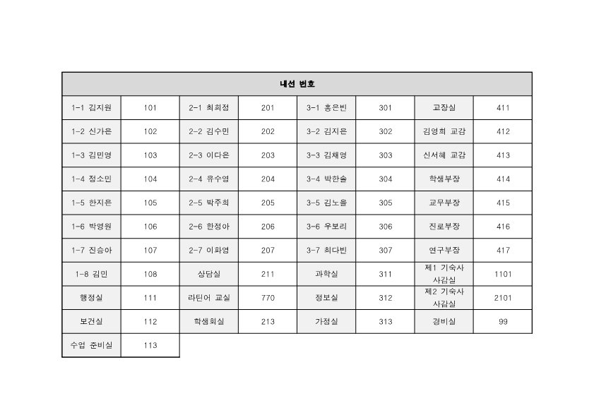 별첨 3. 내선 번호