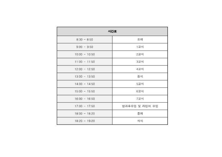 별첨 2. 평일 시간표