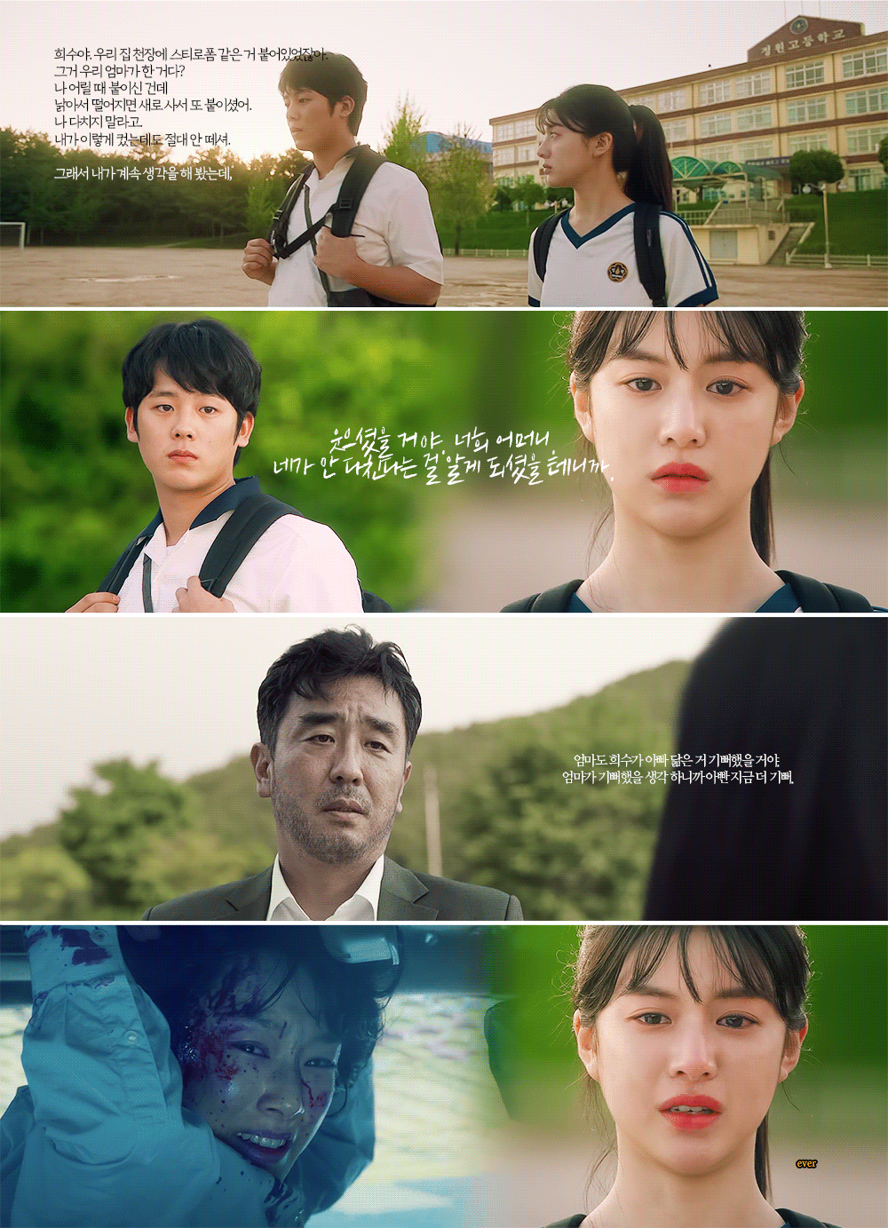 지희는 희수가 어릴때 함께 교통사고를 당했고 사망, 희수는 혼자 엄마가 죽는걸 지켜본 경험이 있음.