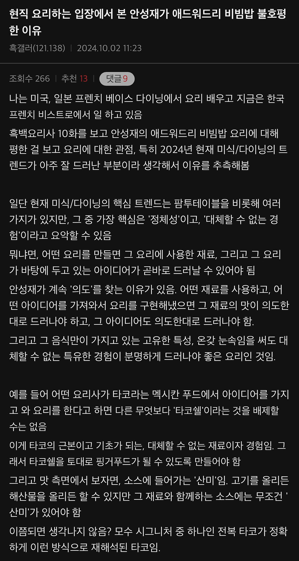 현직 요리사가 말하는 안성재의 OOO 평가 이유