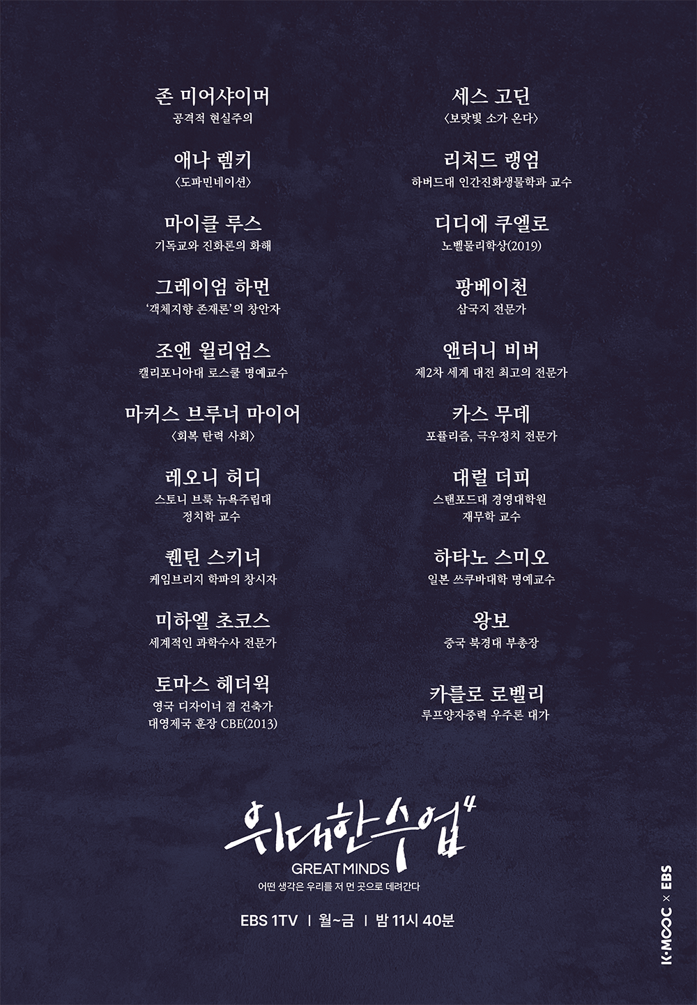 세계적인 석학들의 명강의를 만날 수 있는 EBS의 <위대한 수업, 그레이트 마인즈>가 오는 9월 30일 시즌 4로 돌아온다.