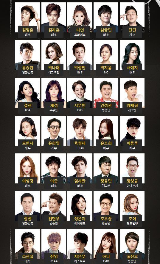 여기서 김지훈, 박지윤, 시우민, 양세형, 장진, 장동민, 하니 나왔던거 같은데