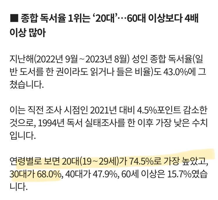 국민 독서율을 비판할거라면 MZ로 한정시키지 말았어야