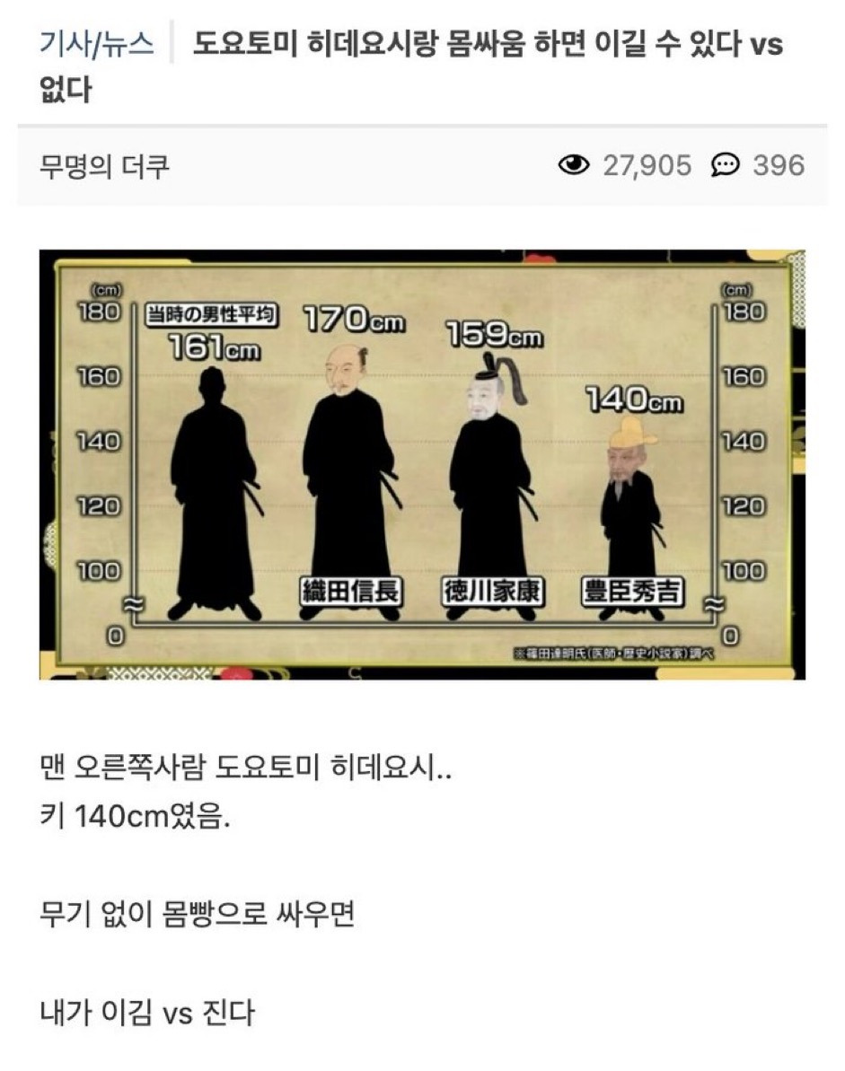 도요토미 히데요시랑 몸싸움으로 싸우면 이길 수 있다 없다