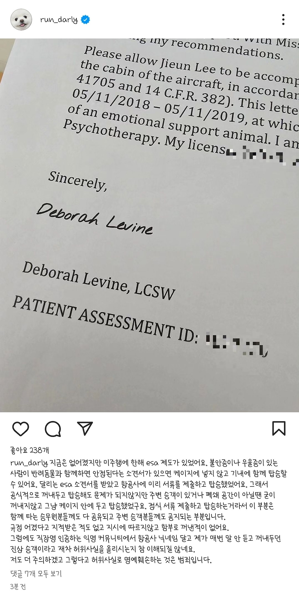 달리 견주 인스타 입장문 업데이트 (esa 제도 )