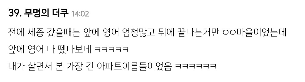 세종시 아파트들은 단체로 외벽에 ㅇㅇ마을 이라고 한글로 박아놓음