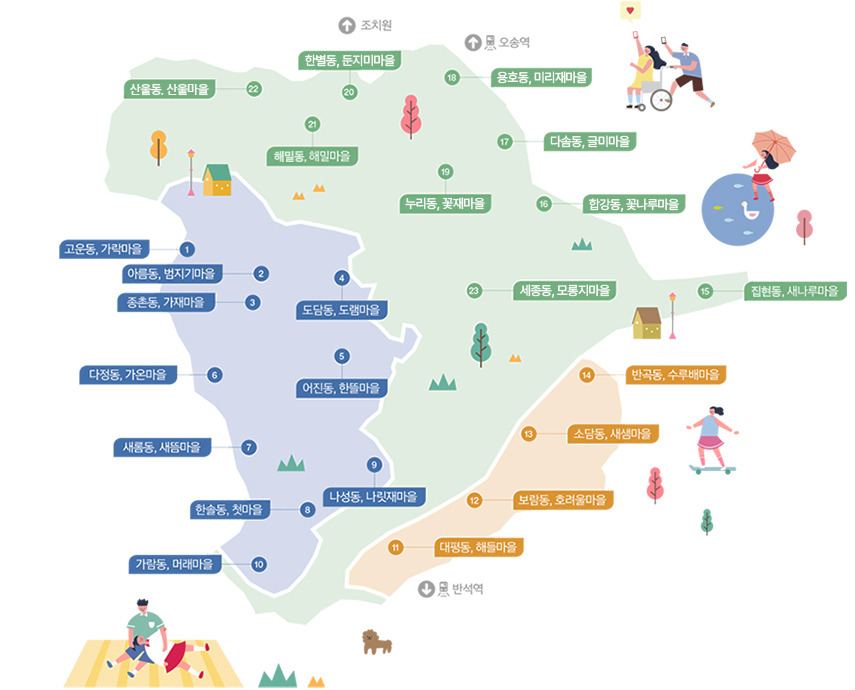 한글로 심플하게 땡땡마을 < 이라고만 박아놓은 세종시