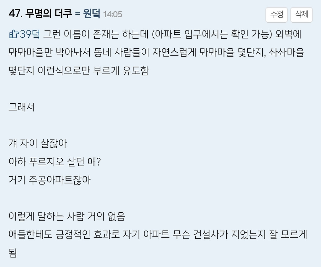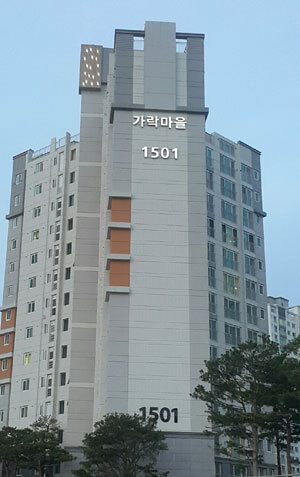 단체로 아파트 외벽에 한글로 마을 이름을 박아버린 동네
