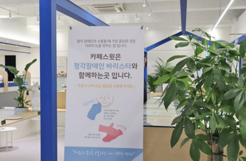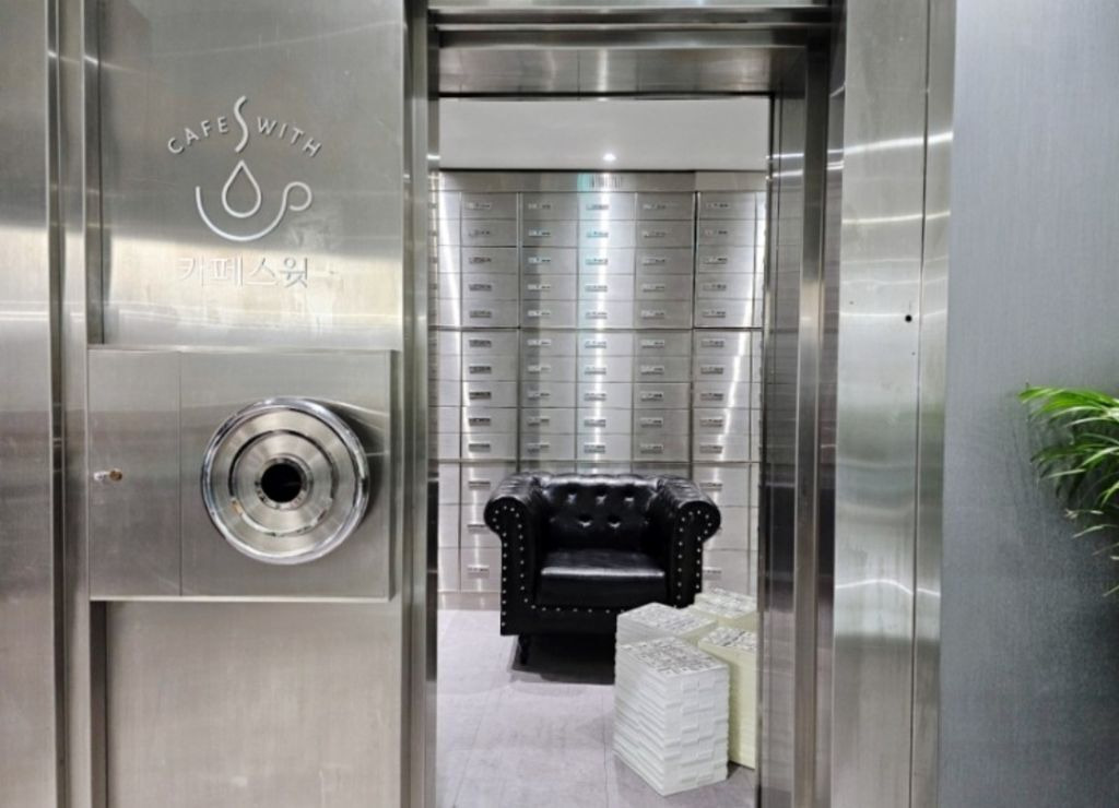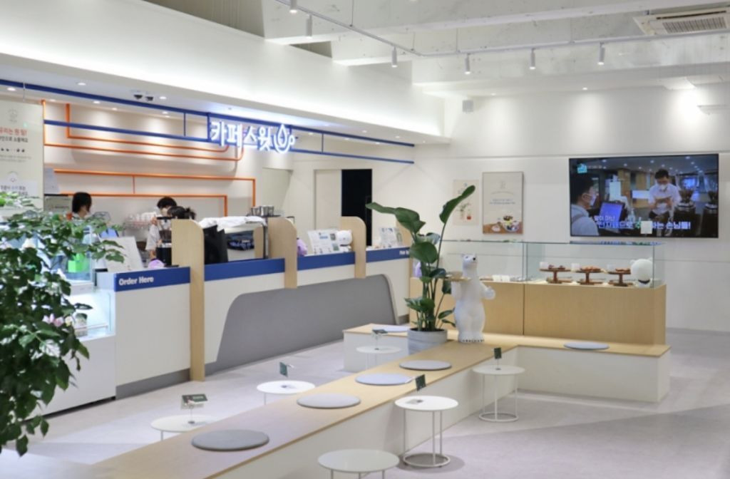 은행 업무 상담할 것 처럼 생겼는데 카페 테이블임
