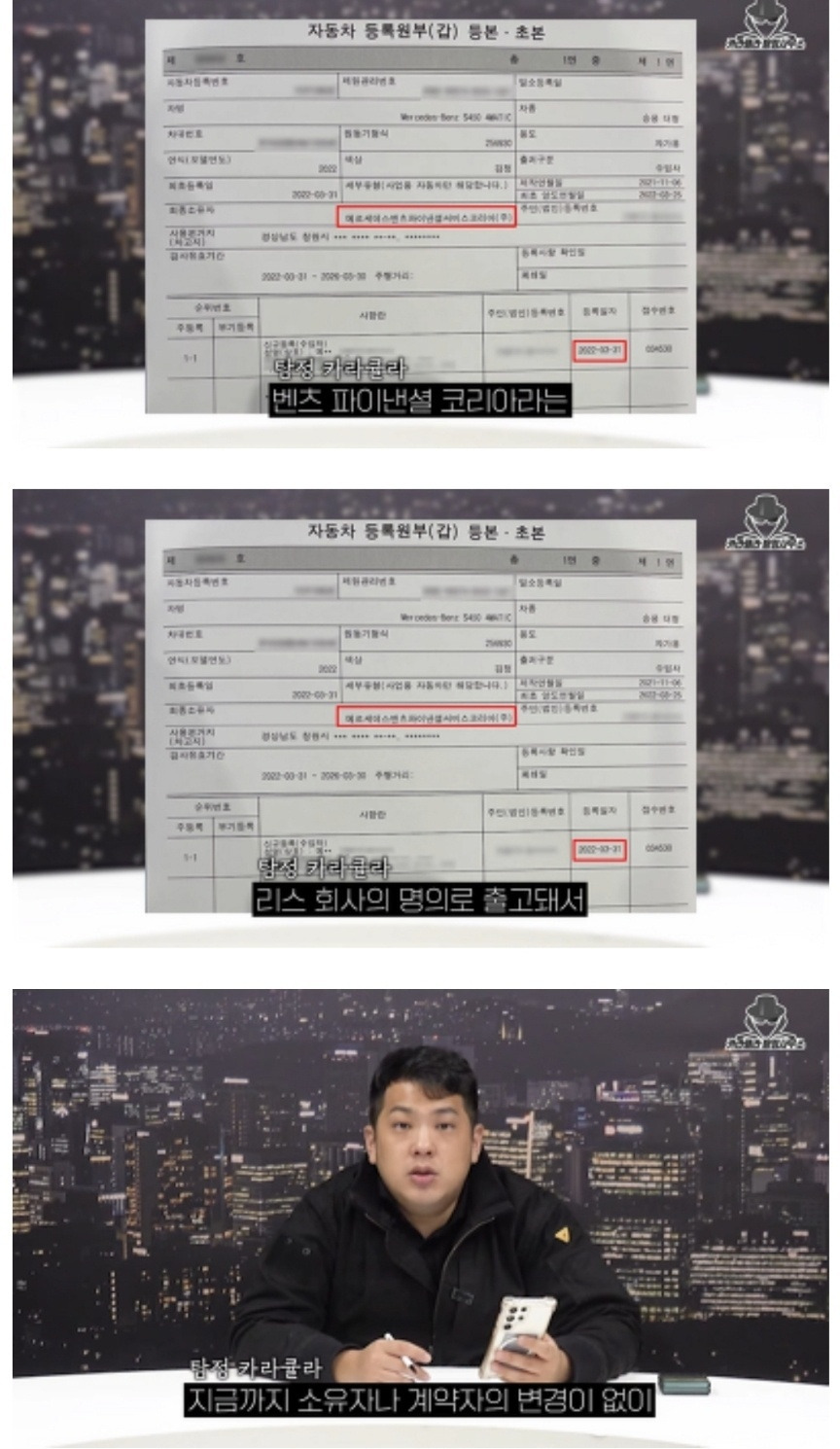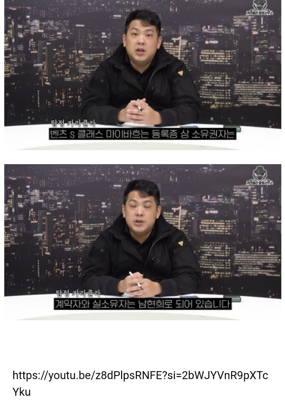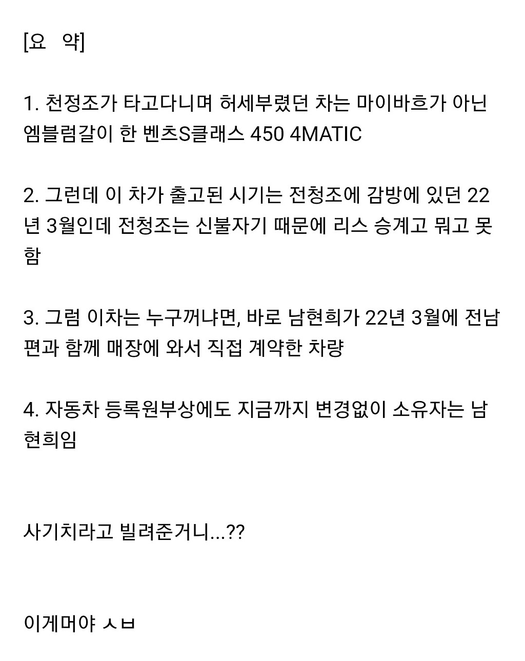 +~남현희 전남편은 상관없음 그냥 작년(이혼 전)에 남현희 명의 벤츠 차량을 같이 와서 계약했었다는 얘기임 저 남현희가 원래 타던 벤츠 차량을 올해 전청조가 엠블럼 바꿔 끼운 '짭' 마이바흐로 타고 다녔다는 얘기가 요점임!!~+