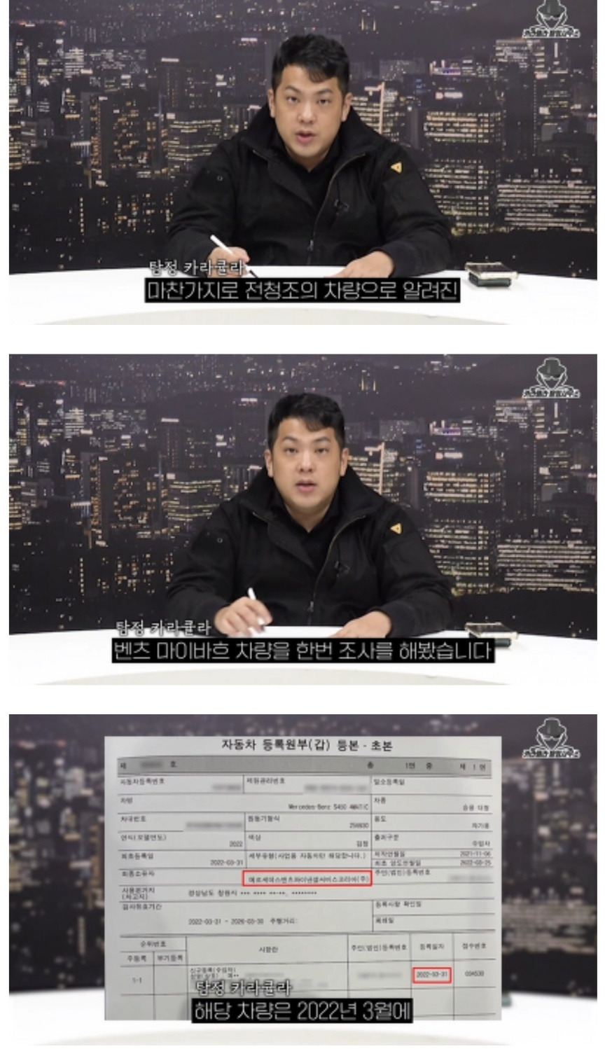 전청조가 탄 차가 마이바흐가 아님 남현희 벤츠차량을 마이바흐 엠블럼 커스텀해서 타고 다니며 본인 마이바흐인척 함