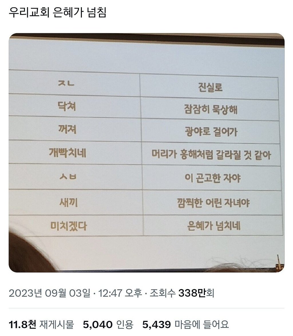 교회에서 욕대신 쓰라고 가르쳐준말 ㄷㄷ