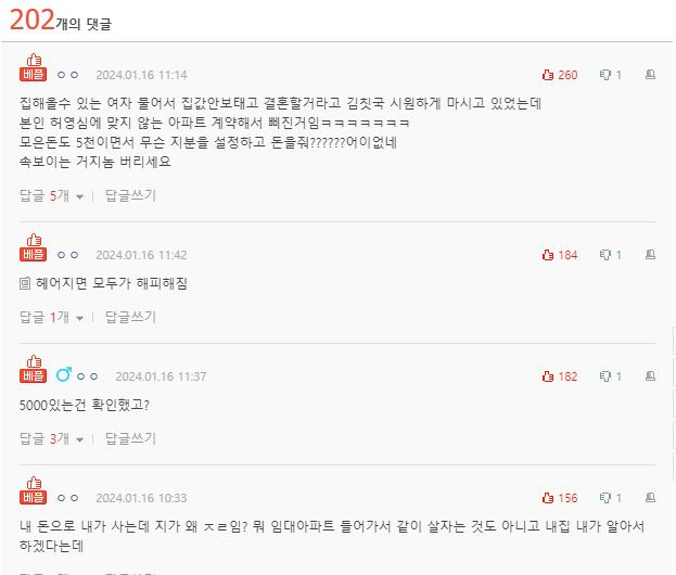 근데 저는 어이가 없는 게, 남친이 돈 보태는 것도 아니고 부동산도 딱 한 번 같이 가준 게 다면서 입으로만 그거 해라 저거 해라 하는 게.. 황당하더라고요.