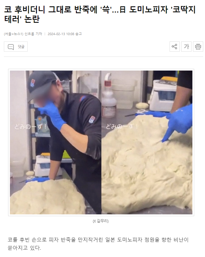 일본 도미노피자 알바생 '코딱지 테러' 논란(더러움주의;;)