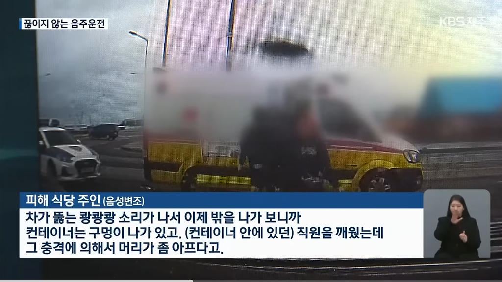 경찰 추격을 피하다 컨테이너 뚫어버린 음주운전자