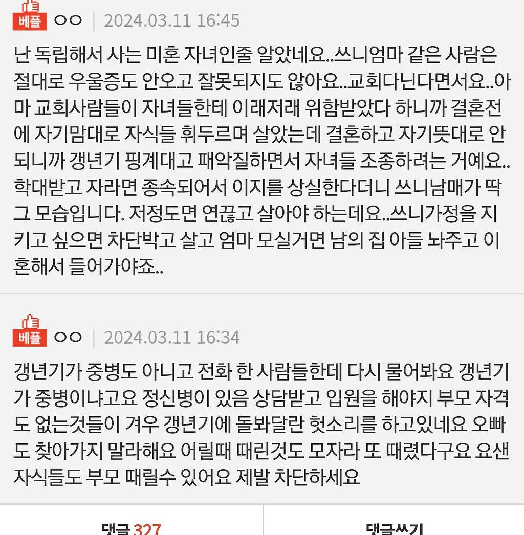 너희가 사춘기가 있었듯이 엄마도 갱년기가 온거라고 혼내시는데