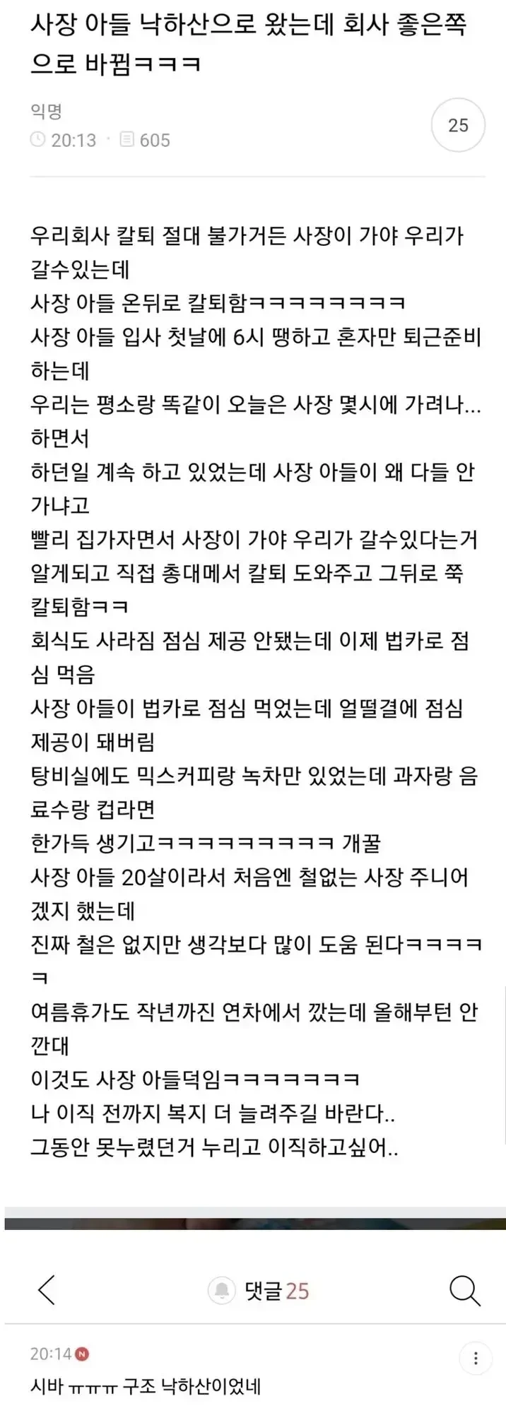 사장 아들 낙하산으로 왔는데