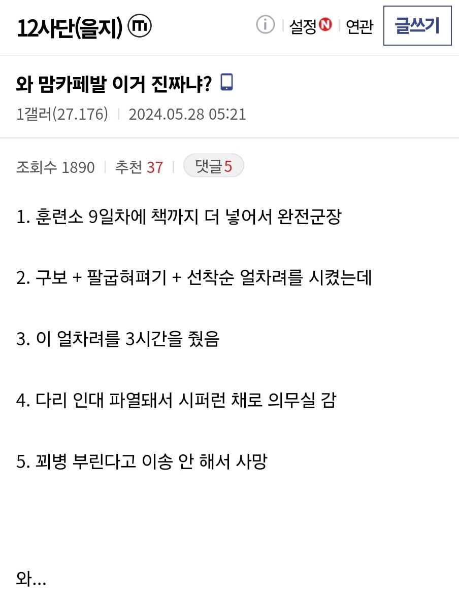충격적인 훈련병 사망사고 사실관계