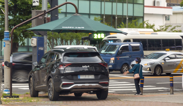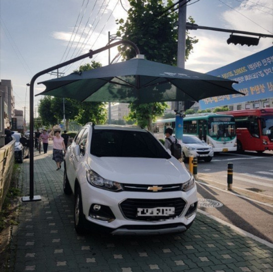 횡단보도 그늘막 잘 쓰고 있습니다^^