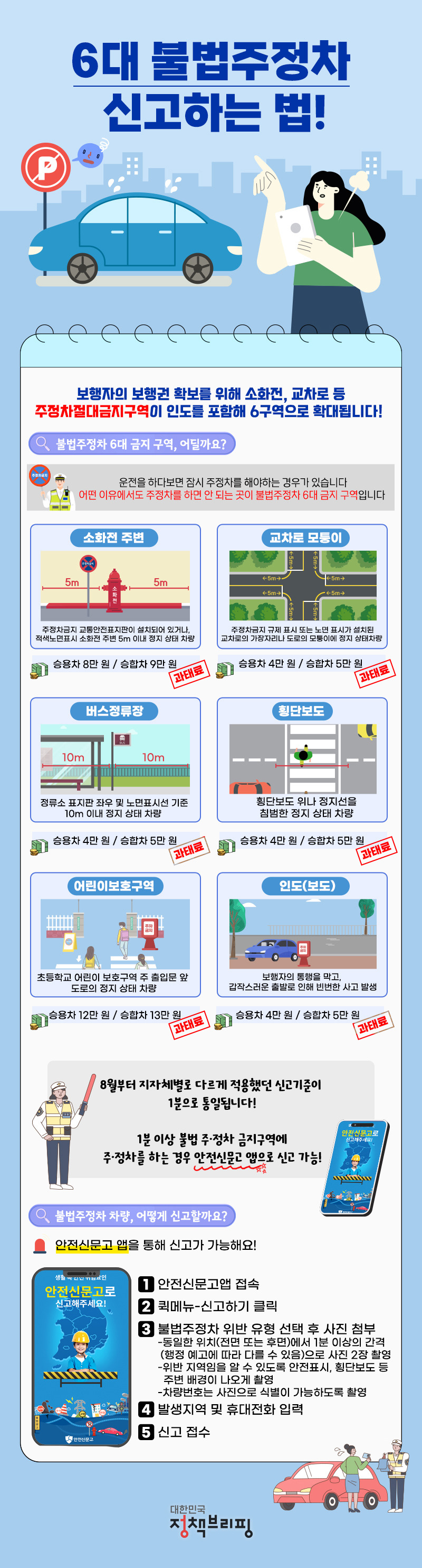 6대 불법 주정차 보이면 안전신문고로 신고 ㄱㄱ