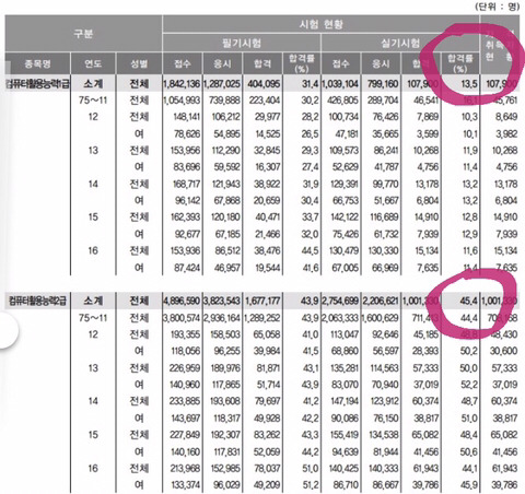 가끔 컴알못들이 1급도 쉽다는 둥 후려치는 사람들 있음. 1급 대부분 3번 연속으로 시험신청하고 20수 하는 사람들도 있음. 합격률 10프로고 컴활 2급도 90프로는 붙을 시험같지만 합격률 50프로도 안 넘음.