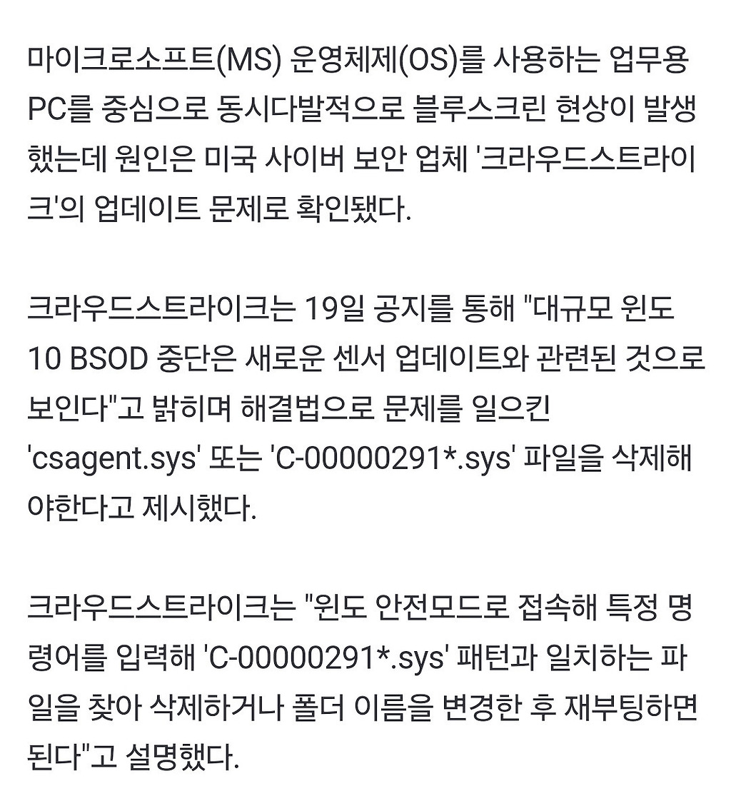 댓글 1오늘 전세계적으로 윈도우에 블루스크린 현상 발생해서 난리 났다고 함